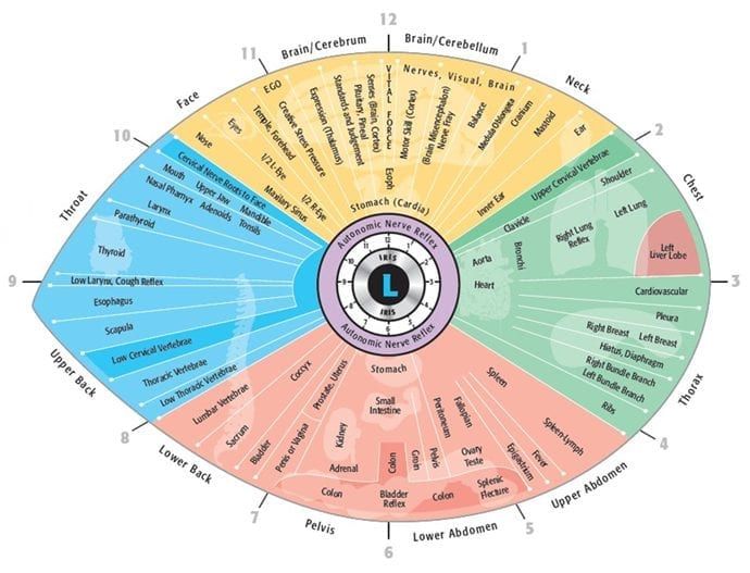 The methodology behind Iridology involves examining the iris and noting the different parts of the iris that correspond with different areas, organs, and parts of your body. Whenever a problem is present, either due to stress, blockages, or toxicity, a spot or mark will appear in the corresponding area of your iris, giving a warning sign that something is not right.